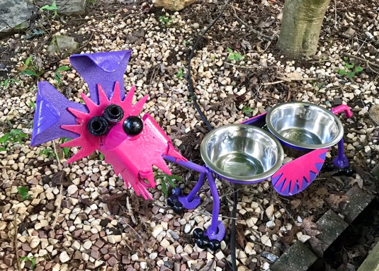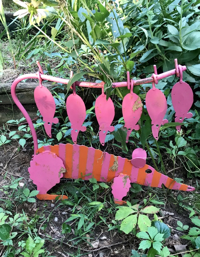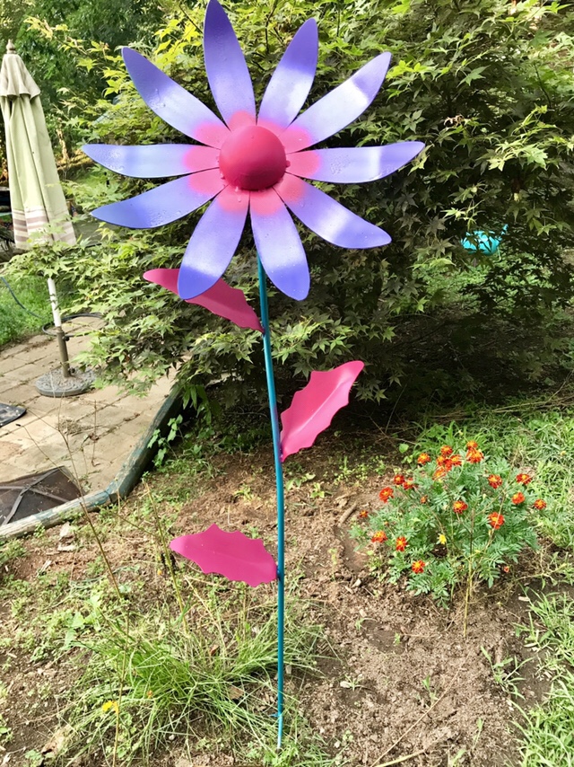 The past few weeks I’ve been readying for the self guided tour by cleaning and setting up the mini gallery and the basement showroom. I’ve also purchased some new metal YARD ART and added my own touch by spraying canned paint on them and refreshing some of my older ones plus I painted the metal bench wild colors. Here are just a few as I’ve been collecting for at least 20 maybe closer to 25 years now ❤️